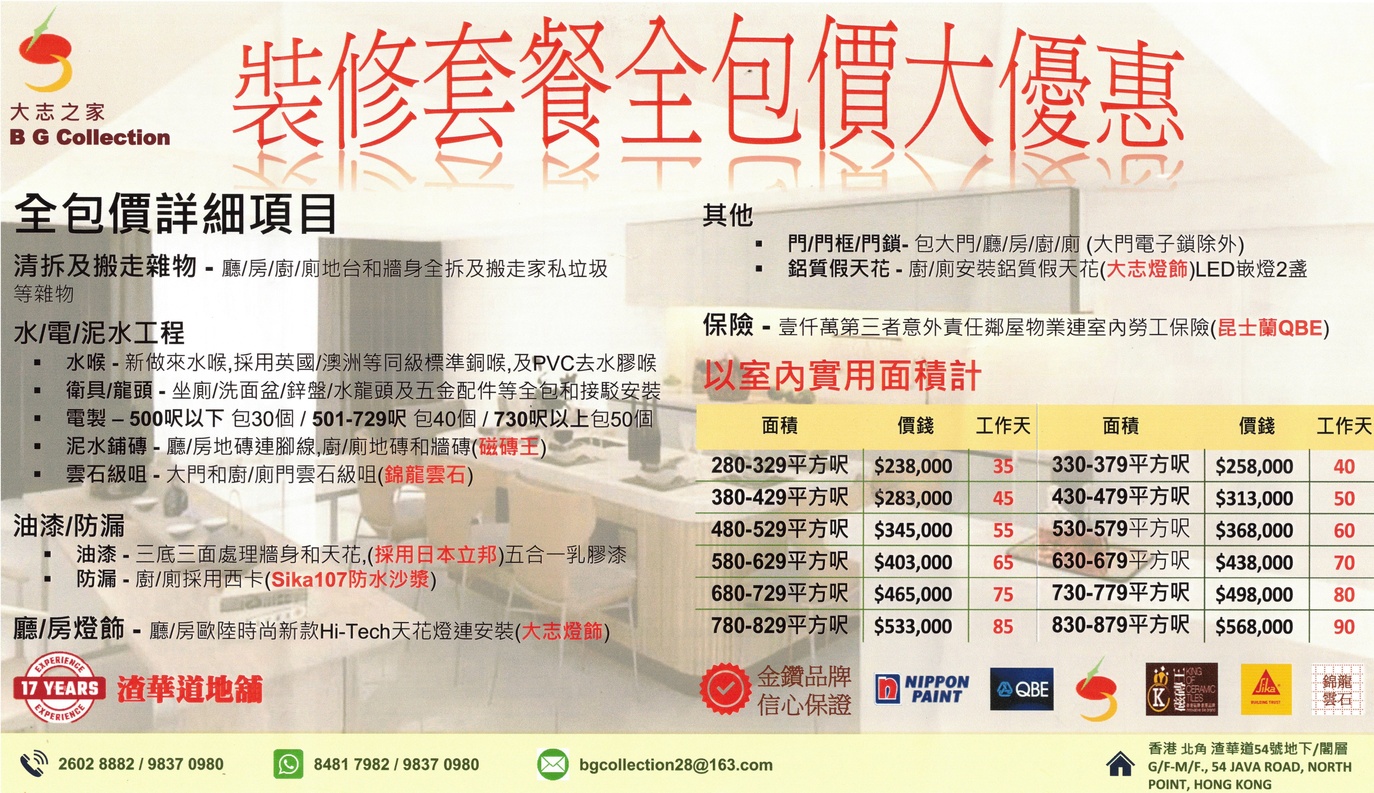 本公司以服務市民有一個安舒快樂的家居環境爲宗旨,無論裝修工程和訂造傢俱,取價公允。